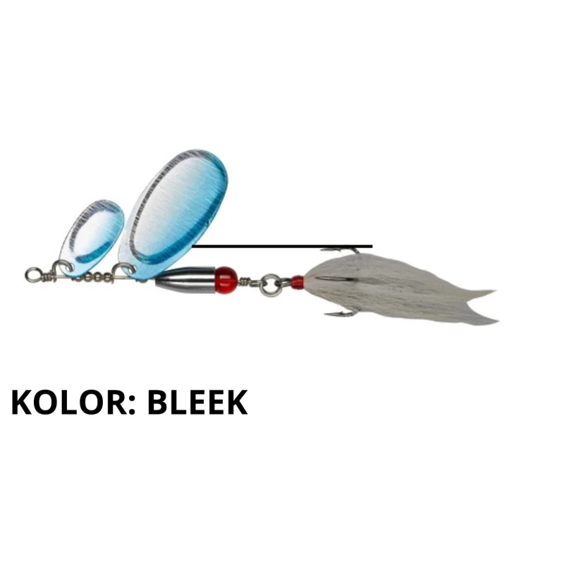 Wersja „tandem” błystki BUSK PIKE z dwoma różnej wielkości skrzydełkami w kształcie paznokcia emitującymi kompleksowy zestaw wibracji, które sprowokują do brania szczupaka nie interesującego się innymi przynętami. Idealne do powolnego prowadzenia w pobliżu przeszkód. Ponad kotwiczką zamontowano czerwony koralik będący celem dla atakującego drapieżnika.