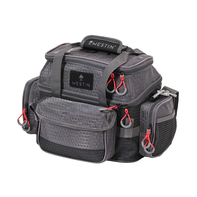 Torba W4 Lure Bag Plus utrzymuje przynęty w porządku, a jedzenie w świeżości. Torba ta zawiera pudełka Westin Tackle Boxes, termiczną komorę, kilka kieszeni, paski narzędziowe z zapięciem na rzep i mocne zamki błyskawiczne. Jest to idealna torba do łowienia z brzegu i łodzi.