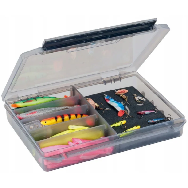 Idealne na wszelkiego rodzaju akcesoria wędkarskie. Pudełko wykonane z polipropylenu – materiału bezpiecznego w kontakcie z miękkimi przynętami sztucznymi.