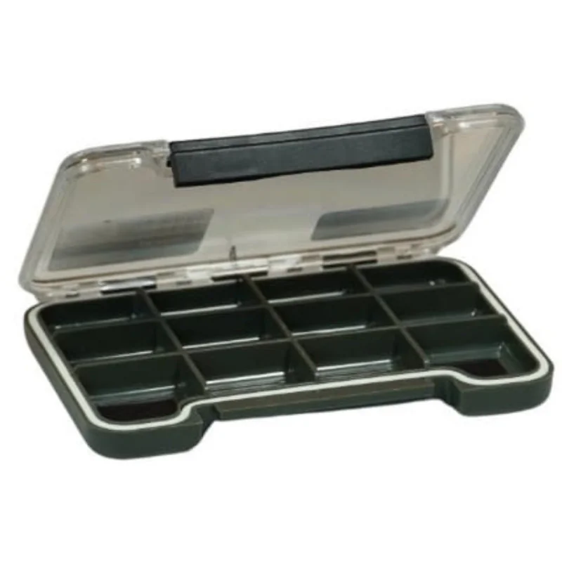 Magnetyczne, wodoodporne pudełko wędkarskie. Wyposażone w 12 gniazd z magnesami na dnie, umożliwia bezpieczne przechowywanie haczyków, agrafek i krętlików, zapobiegając ich gubieniu się i tępieniu. Podłużny zatrzask oraz silikonowe uszczelnienie skutecznie chronią zawartość przed dostaniem się wody. Kompaktowy rozmiar sprawia, że pudełko idealnie mieści się w kieszeni kamizelki, plecaka lub torby wędkarskiej.