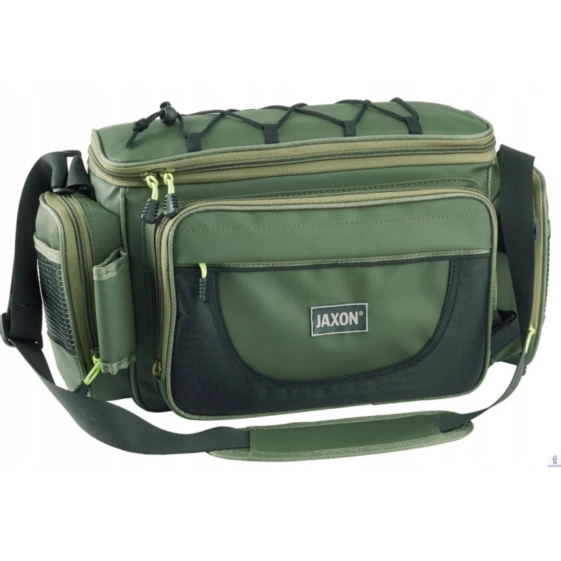 Doskonałej jakości torba ,wykonana z mocnego materiału w kolorze jak na zdjęciu. Zaopatrzona w wiele przegród i kieszeni pozwalających bezproblemowo zmieścić sporą cześć naszego ekwipunku wędkarskiego. Torba posiada bardzo mocne suwaki. Do jej noszenia służy mocny szeroki i regulowany na długości pas z naramiennikiem. Bardzo duża komora główna.