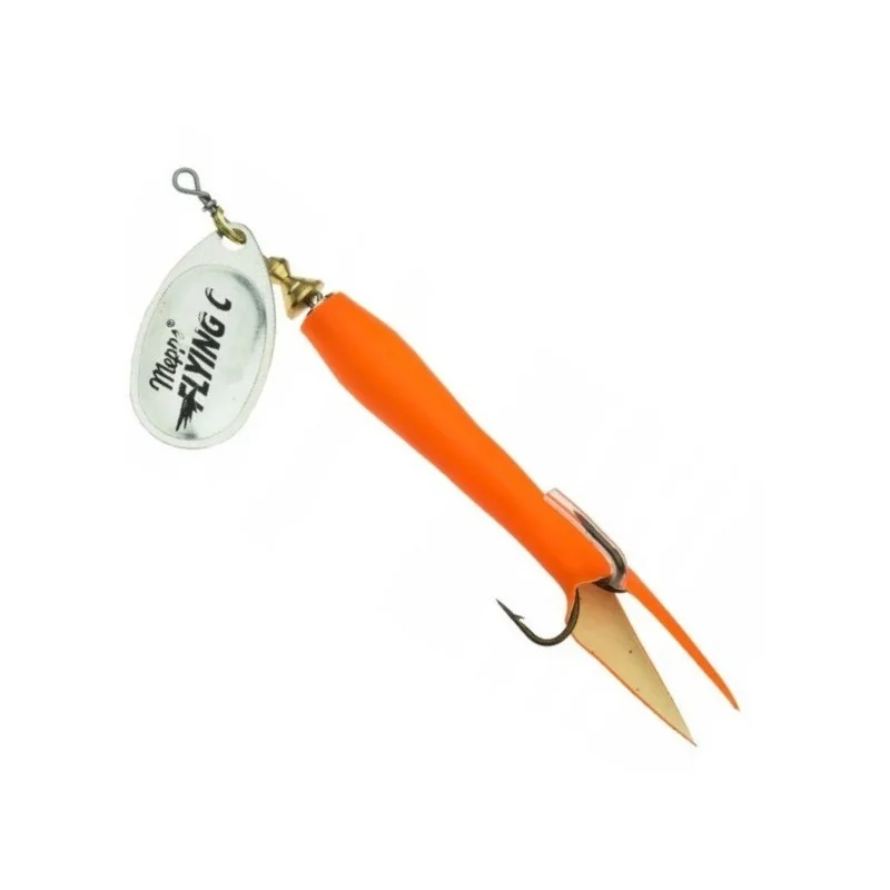 Błystka Aglia Flying Srebrny/Pomarańczowy polecana jest na trocie i łososie, szczególnie w rzekach uchodzących do morza. Znakomicie się sprawdzi podczas polowania na sandacze w głębokich zbiornikach.