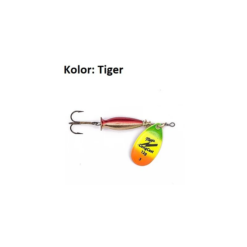 Błystka obrotowa longcast z przeciążonym korpusem występuje w 3 rozmiarach.