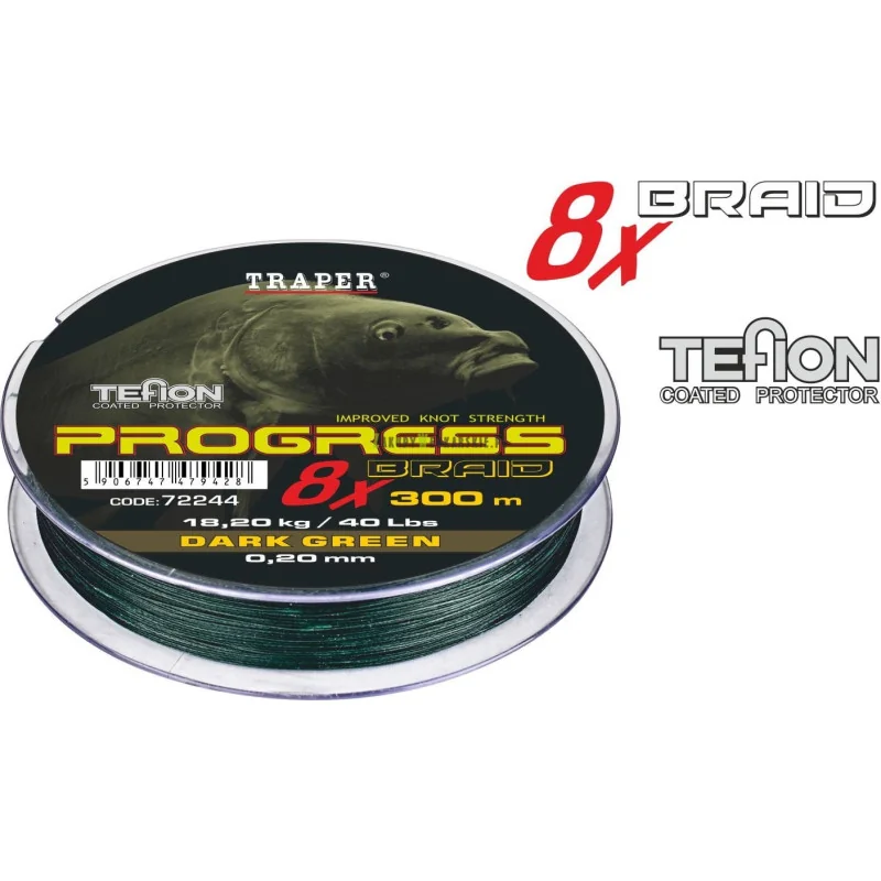 Plecionka wykonana z bardzo cienkich, gęsto splecionych włókien, pokryta warstwą teflonu. Powłoka teflonowa podnosi bardzo trwałość linki, czyni ją bezgłośną na przelotkach i podwyższa odporność na przetarcia. Dzięki gładkiej powierzchni osiągamy bardzo precyzyjne i dalekie rzuty.