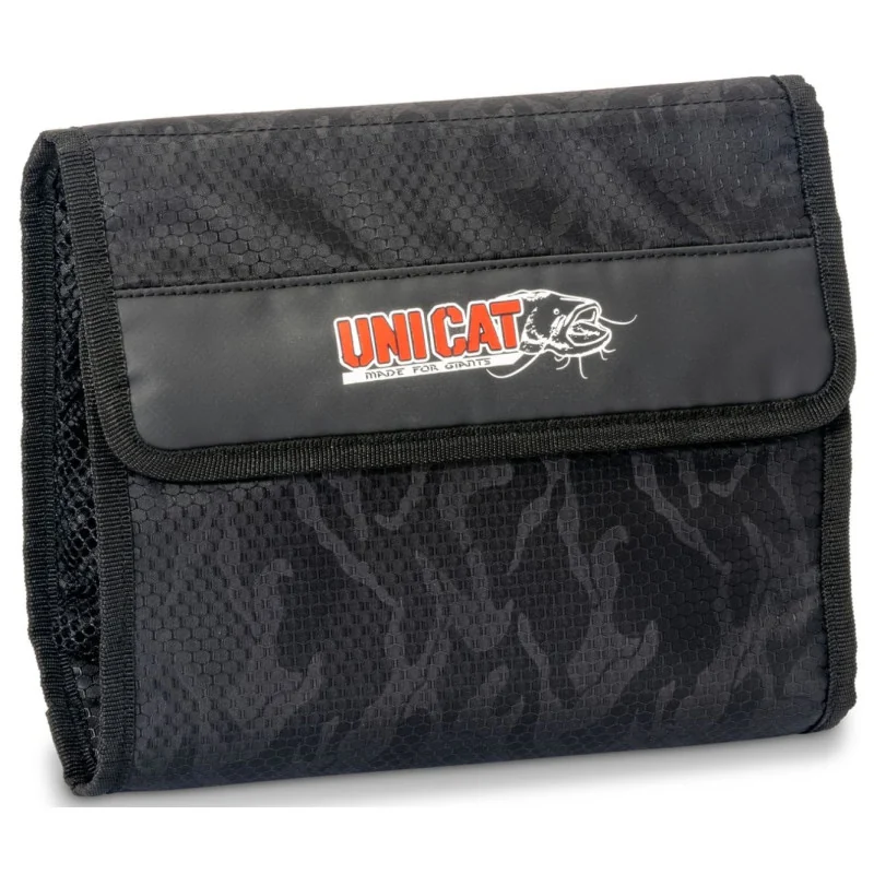 Portfel Uni Cat Rig Sleeve to wysokiej jakości portfel na przypony, który można bezpiecznie zapiąć na rzep. Przechowuj gotowe zestawy w 10 przezroczystych rękawach, które są wyposażone w zatrzaski, a materiał przyponowy w siatkowym schowku naprzeciwko. Ekskluzywny wygląd Honeycomb Black-Camou sprawia, że jest to prawdziwa perełka.