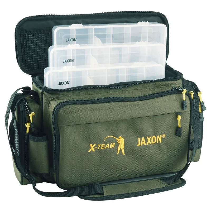 Torby wędkarskie z pudełkami RH w komplecie. Torby posiadają usztywnione dno.
