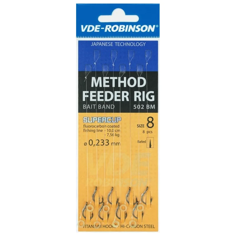 Nowe przypony do method feeder od firmy Robinson, ostre, kute haki gwarantują pewny hol ryby, zawiązane na wytrzymałej żyłce Super Cup lub plecionce Pro Feeder w zależności od modelu.
