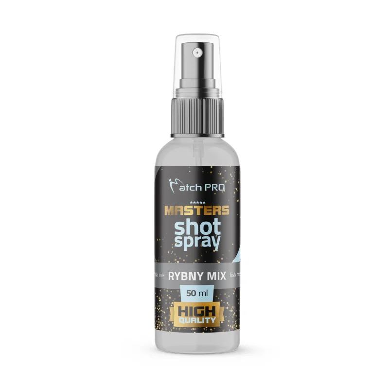 Najwyższej jakości zawodnicza seria atraktorów w sprayu. Bardzo mocno skondensowany naturalny aromat w 27 odmianach pozwala dopasować się do każdego łowiska i preferencji ryb w danym dniu. Masters Shot dedykowany jest do dopalenia koszyka zanętowego, kulek, zanęty, pelletu, przynęt oraz ziaren. Po użyciu tworzy powłokę aromatyczną, która utrzymuje się przez długi czas – wabiąc ryby. Masters Shot jest bardzo skuteczny, gdy chcemy złamać intensywne zapachy występujące w łowisku takie jak (rośliny, muł, małże itp.).