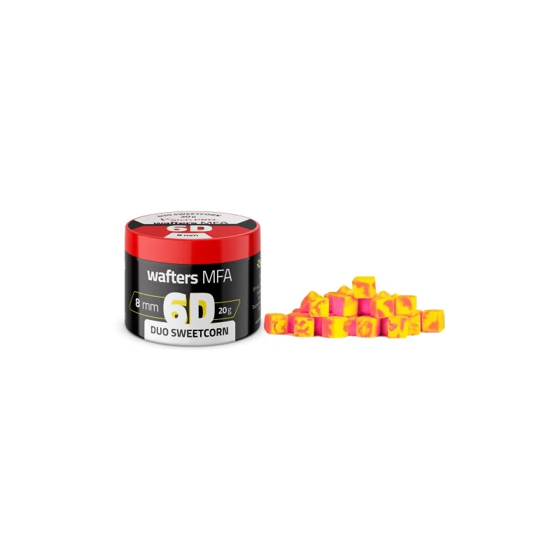MPRO Fast Action to najnowszej generacji technologia produkcji miksu do przynęt i właśnie z niego zostały wyprodukowane nasze 6D WAFTERS MFA. Wyróżniają się unikalnym sześciennym kształtem oraz nowoczesnym składem opracowanym z myślą o maksymalnej skuteczności połowów. Dzięki innowacyjnej technologii MPRO Fast Action, nasza przynęta działa ekspresowo, uwalniając intensywne aromaty natychmiast po kontakcie z wodą.