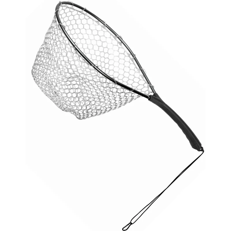 Podbierak ten wyróżnia bardzo wygodna, wyprofilowana rączka. Jest ona pokryta antypoślizgową powłoką. Zapewnia to pewny chwyt, nawet przy mokrych dłoniach. Silikonowa siatka to bezpieczeństwo ryby, bez okaleczeń. Dodatkowym elementem jest guma z karabińczykiem.