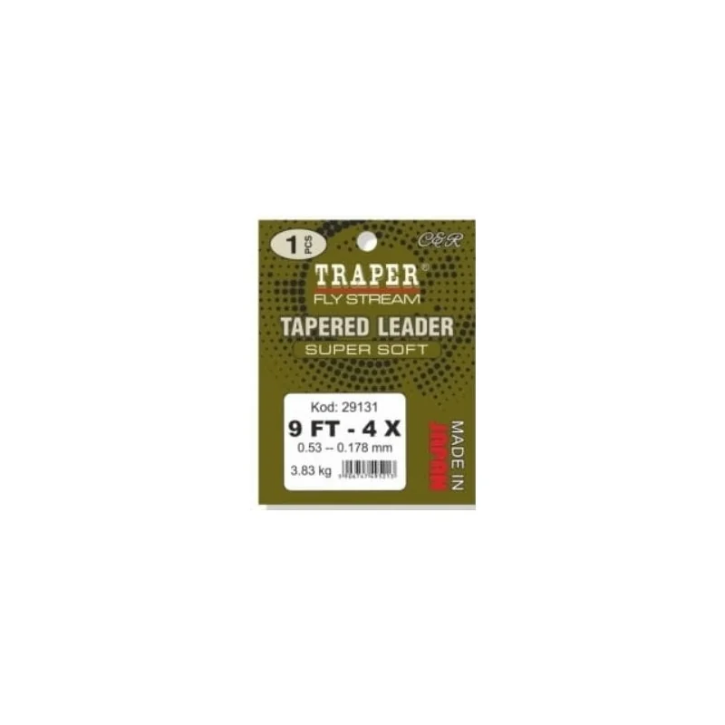 Japońskie, monolityczne przypony koniczne TRAPER w jasnooliwkowej barwie. Super miękkie, odporne na przetarcia, o podwy¿szonych parametrach wytrzymałości liniowej oraz na węzłach. Jedna sztuka w opakowaniu.