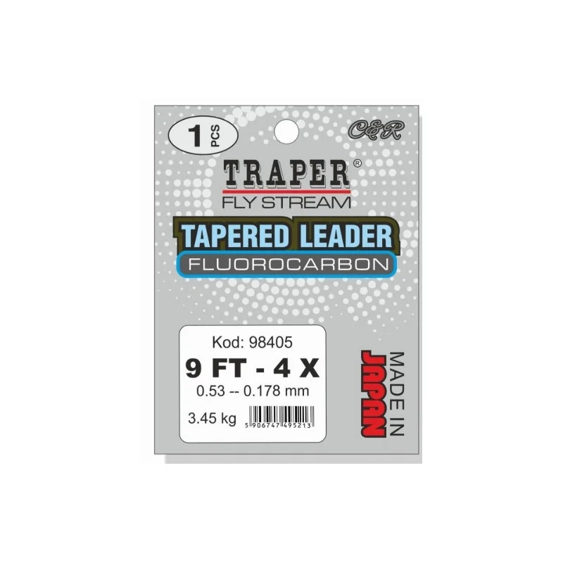 Japoński przypon koniczny z fluorocarbonu. Całkowicie niewidoczny w wodzie. Szybko tonący, idealny do metody nimfowej.