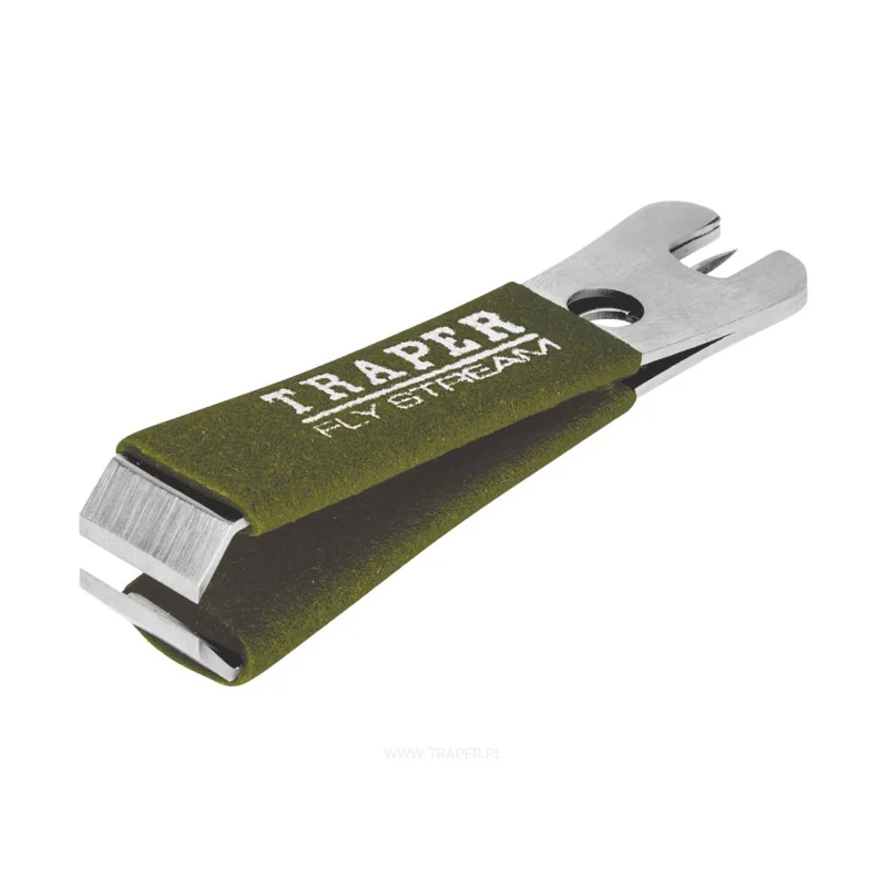Profesjonalna obcinaczka do żyłki. Ostrze z japońskiej stali, pokryte węglikiem wolframu. Dla poprawienia chwytu ramiona laminowane antypoślizgowym, trwałym tworzywem. Igła do udrażniania oczek w haczykach i otwór do zaczepu.