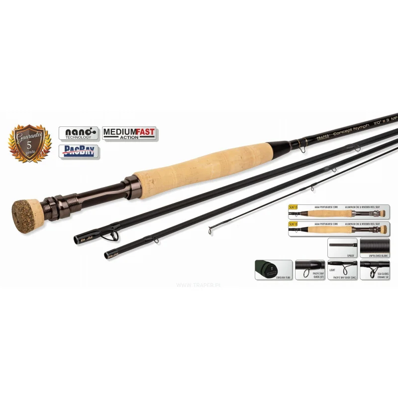 Konstrukcja tego wędziska oparta jest na wysokomodułowym, nieszlifowanym blanku 40+46T. Sekcje łączymy za pomocą precyzyjnie wykonanych spigotów. Połączenia takie gwarantują równomierne ugięcie przy rzutach jak i przy holu ryb. Dla perfekcyjnego wyważenia wędkę uzbrojono w ultralekkie przelotki Pac Bay. Dodatkowym, praktycznym elementem jest uzbrojenie szczytówki. Druga przelotka wężowa zapobiega częstemu splątywaniu się żyłki w newralgicznym miejscu. Dzięki matowej powłoce blanku żyłka nie przykleja się w trakcie wędkowania. Rękojeść wykonana jest z wyselekcjonowanego, portugalskiego korka AAAA. Uchwyt, a także górna część dolnika jest wykończona drewnem egzotycznym. Zakończenie dolnika jest z korka i trwałej korkogumy. W ofercie znalazły się wędziska optymalnej długości i klasie idealnie dobranej do różnej specyfiki łowisk jak i wielkości łowionych ryb. W komplecie tuba z przegrodami na elementy wędziska wykonana z cordury. Wędka posiada pięcioletnią gwarancję serwisową.