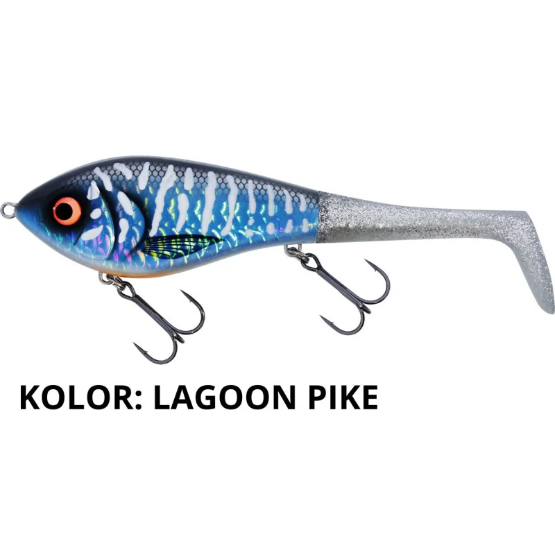 Swim Tail to nowa odmiana legendarnej przynęty Swim. Oparta na 12-centymetrowym Original Swim z mocowaniem śrubowym umożliwiającym wymianę ogona w ciągu kilku sekund, co wnosi nowy wymiar do połowu szczupaków. Łów z ogonem z paletką prowadząc jednostajnie lub robiąc krótkie przerwy. Alternatywnie używając ogona typu twister, zastosuj bardziej tradycyjne szarpnięcia z wieloma przerwami. Bez względu na aktywność szczupaków, Swim Tail pomoże Ci osiągnąć zamierzony cel. Swim Tail ma całkowitą długość 17,5 cm z ogonem z paletką i 19 cm z ogonem typu twister. Ta niezwykle łatwa w łowieniu przynęta pomoże dostosować się do wielu sytuacji w ciągu całego sezonu, co czyni ją „niezbędną” w pudełku szczupakowym. Wskazówka: Łów z ogonem typu twister w górnych partiach wody, aby uzyskać bardziej wyrazistą pracę. Stosując ogon z paletką, uzyskasz mocniejszą pracę ogonową przynęty, a dodatkowo dołączając ciężarek do przedniego oczka przynęty, będziesz mógł obłowić nią głębsze partie łowiska.
