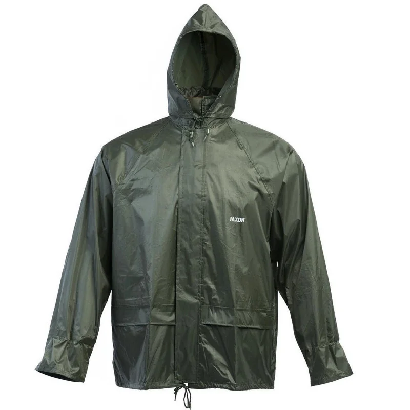 Komplet przeciwdeszczowy produkowany przez renomowaną firmę Jaxon. Składają się na niego spodnie i kurtka. Obie części są lekkie, wygodne i bardzo łatwe w transporcie.