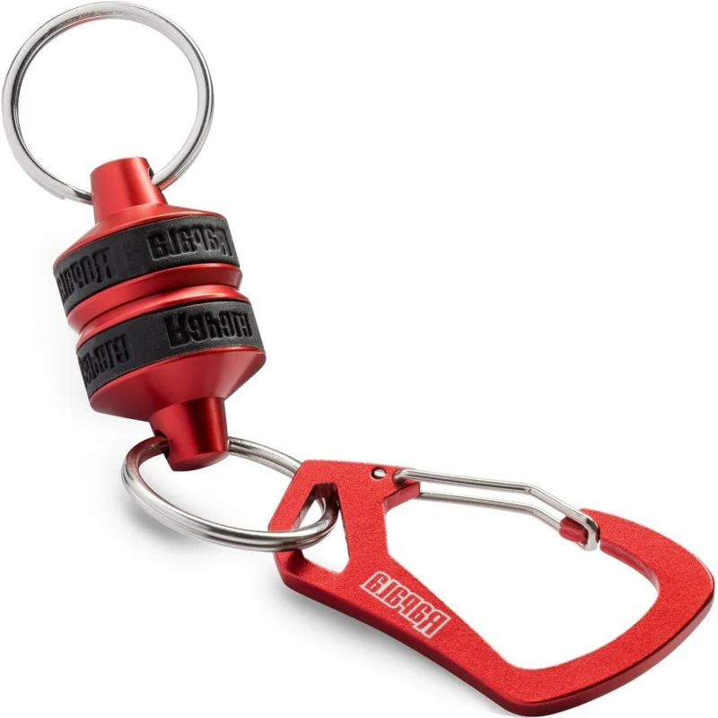 Mocny magnetyczny klips z karabińczykiem, idealny do mocowania podbieraka, dużego narzędzia lub innych akcesoriów do kurtki wędkarskiej lub kamizelki. Magnesy trzymające narzędzie łatwo rozłączyć jednym pociągnięciem ręki. Równie łatwe i szybkie jest ponowne połączenie magnesów.