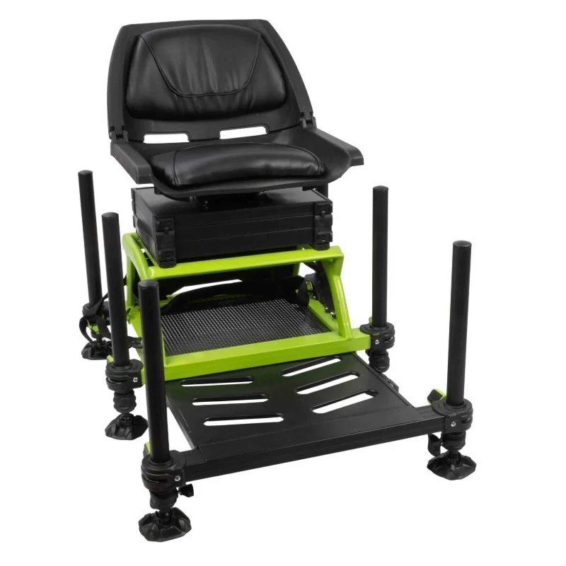 MX36 Pro to topowe siedzisko wyczynowe charakteryzujące się niezbędną stabilnością i możliwością regulacji. Wzbogacony o boczną szufladę, dodatkowe gwinty w nogach D36 oraz pojemną półkę pod obrotowym siedziskiem, na zanęty czy dodatkowe bagaże.