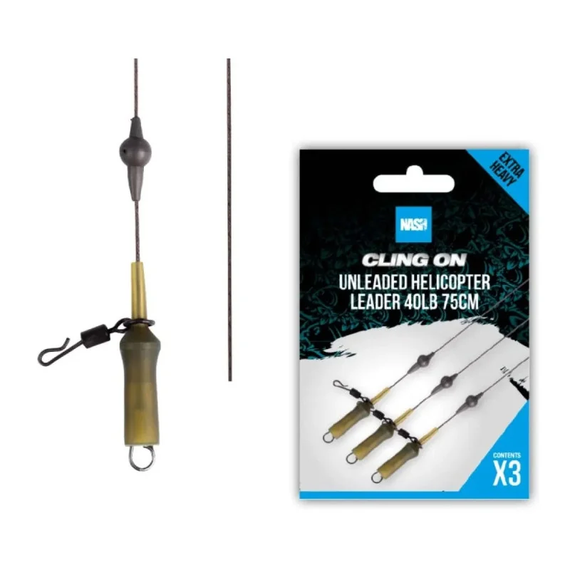 - Szybko tonący, bezołowiowy materiał Cling On Lead Free Leader o wytrzymałości 40lb,