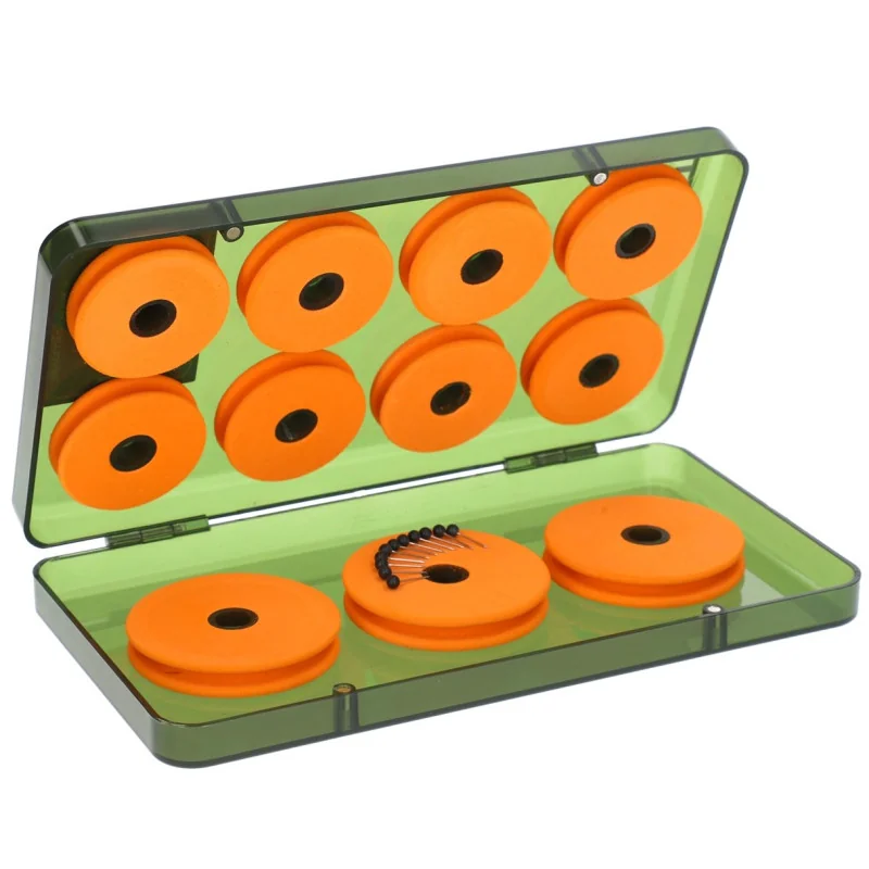Specjalistyczne pudełko z magnesami, przeznaczone do przechowywania przyponów typu Chod Rig. Wyposażone w 8 mniejszych i 3 większe krążki, pozwalające formować i przechowywać profilowane przypony do połowu na kulki pop up. W komplecie 11 pinesek.