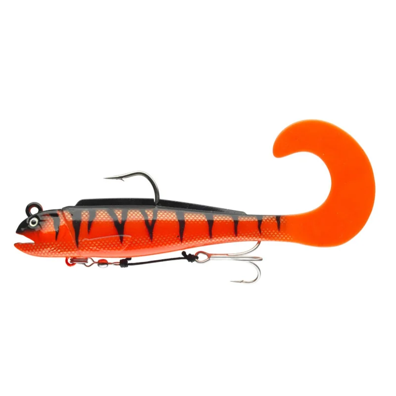 Magnes na Halibuty – dostępny w nowych wzorach! Imitacje z miękkiego plastiku D-Wolf są doskonale przygotowane do łowienia dużych ryb, takich jak dorsze, a zwłaszcza halibuty w Norwegii, ponieważ naukowe badania dowiodły, że wolfish jest jedną z ulubionych ryb drapieżnych halibutów. D-Wolf z ogonem Curly Tail pracuje swoim ogonem już przy lekkim pociągnięciu, a swoją wyjątkową skuteczność udowodnił w trakcie naszych testów, pomagając przechytrzyć niezliczone ilości dorszy i halibutów. Świetnie spisuje się także podczas połowu w nurcie na mocnym wędzisku z kołowrotkiem spinningowym. Wszystkie wysokiej klasy komponenty zostały dobrane z myślą o największych obciążeniach w trakcie połowu grubych okazów w trudnych warunkach.