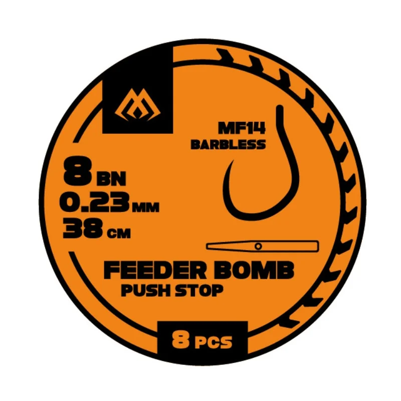 Gotowe przypony z nowym hakiem MF14 przeznaczonym na największe ryby. Idealnie sprawdzą się w technice feeder bomb, wolno opadającej oraz pellet waggler. Dostępne w rozmiarach od 6 do 14, o trzech różnych zakończeniach włosa: Push Stop, Spike, Band.