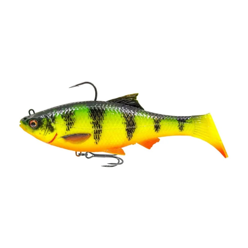 3D Roach RTF FS Savage Gear jest imitacją płoci (Ready to Fish). Korpus przynęty jest oparty na skanie prawdziwej płoci, z super realistycznymi detalami i ma nadruk skóry Photo Chrome i dodany zapach DNA. 3D Roach RTF FS to przynęta, która jest nie do odróżnienia od prawdziwej płoci. Płocie są jedną z głównych zdobyczy dla dużych szczupaków, więc ta przynęta jest zawsze przynętą przez cały rok! Dzięki połączeniu szybkiego tonięcia, miękkiego PVC i lekkiego, ale dużego wiosła ze szklaną grzechotką, ta przynęta zawsze będzie pływać na opadzie, nawet z napięciem żyłki! Dlatego przynętą tę można łowić zarówno w płytkich wodach, kierując szczytówkę lekko do góry, ale także używać do mielenia w głębokiej wodzie na prawdziwe potworne szczupaki. Duży ogon w kształcie wiosła sprawia, że przynęta kołysze się uwodzicielsko, a grzechotka w ogonie wysyła prowokujące kliknięcia, aby zwabić ciekawskie ryby drapieżne i pomóc zlokalizować przynętę w bardziej mętnej wodzie. Większe rozmiary są idealne na duże szczupaki, ale nie zdziw się, gdy zahaczysz o wymarzony okaz sandacza lub okonia na jednym z mniejszych rozmiarów!