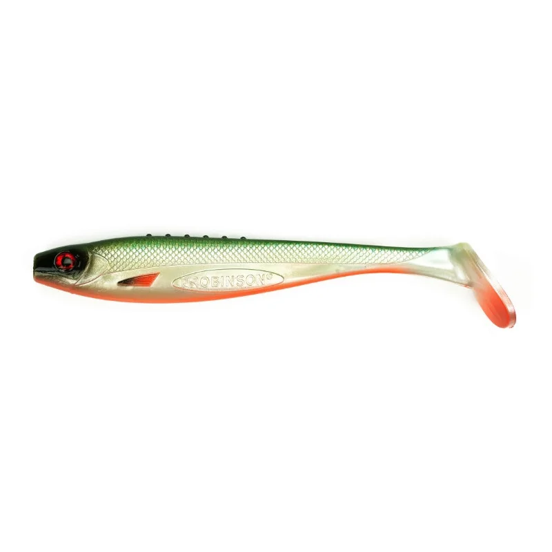 Najnowsza odsłona serii Longinus Pro 10cm. Wyjątkowo skuteczne, wykonane z elastycznej i trwałej gumy. Występują w dwunastu nowych kolorach sprawdzonych i rekomendowanych przez naszych testerów. Zaznaczone łuski i płetwy wraz z trójwymiarowym okiem wiernie upodabniają te przynętę do uklei lub innej białej ryby. Długa, cienka tylna część korpusu zapewnia doskonałą pracę przy każdej prędkości prowadzenia. Prowokuje ryby prowadzona w równym tempie, nawet wolno, jak również w opadzie. Ma specjalną przyssawkę, która utrzymuje przynętę na miejscu. Guma przyklejona jest pod ciśnieniem do główki, zapobiegając zsuwaniu się wabika i w ten sposób zwiekszając jego żywotność. Na grzbiecie gumy zaznaczone są miejsca, przez które należy przebijać hak, dzięki czemu wędkarzowi łatwiej jest umieścić hak na głównej osi. Korzystnie wpływa to na skuteczność przynęty, jak również jej żywotność, gdyż wielokrotne nieudane przebijanie haka niszczy gumę.