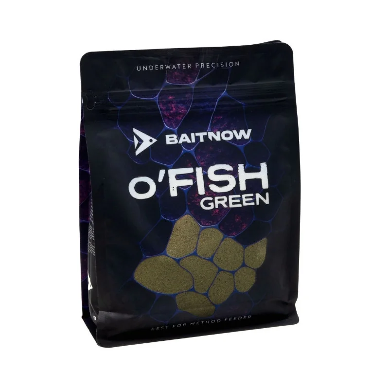 Zanęta BaitNow Method Feeder 800g - O'Fish Green - szukasz zanęty do method feeder, która sprawdzi się w najtrudniejszych warunkach? Zastosowanie mączek rybnych wysokiej jakości to gwarancja skuteczności i efektywności. Wersja Green to kompozycja mielonych prażonych konopi i olejów, drobno zmielona, o wysokiej puszystości, co sprawia, że intensywnie wabi i stymuluje ryby do żerowania. Wysoka efektywność w testach udowadnia, że doskonale sprawdza się na łowiskach o silnej presji wędkarskiej, dając przewagę w zawodach. Łów więcej i skuteczniej z O'Fish Green!