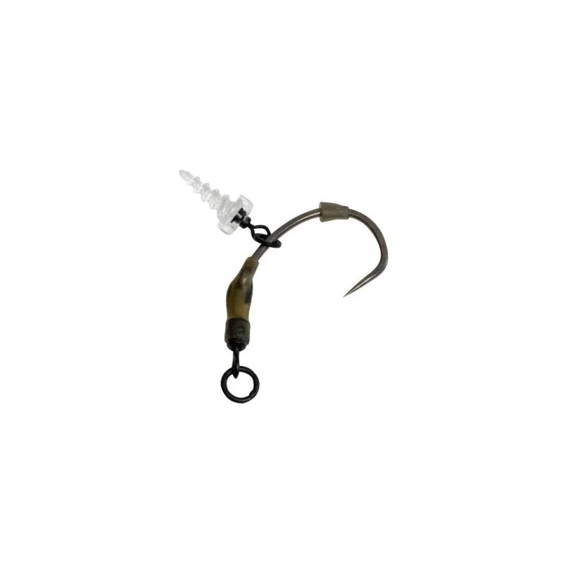 Sercem zestawu jest niezwykle ostry hak Clinga SP, połączony z krętlikiem Ronnie Swivel w rozmiarze 11. Takie połączenie umożliwia pełny, 360-stopniowy obrót haka i błyskawiczną reakcję w momencie zassania przynęty, co znacząco podnosi skuteczność zacięć. Supa-Grip Hook Bead oraz Medium Hook Rigger utrzymują wszystkie elementy w optymalnej pozycji, zapewniając agresywny kąt pracy haka.