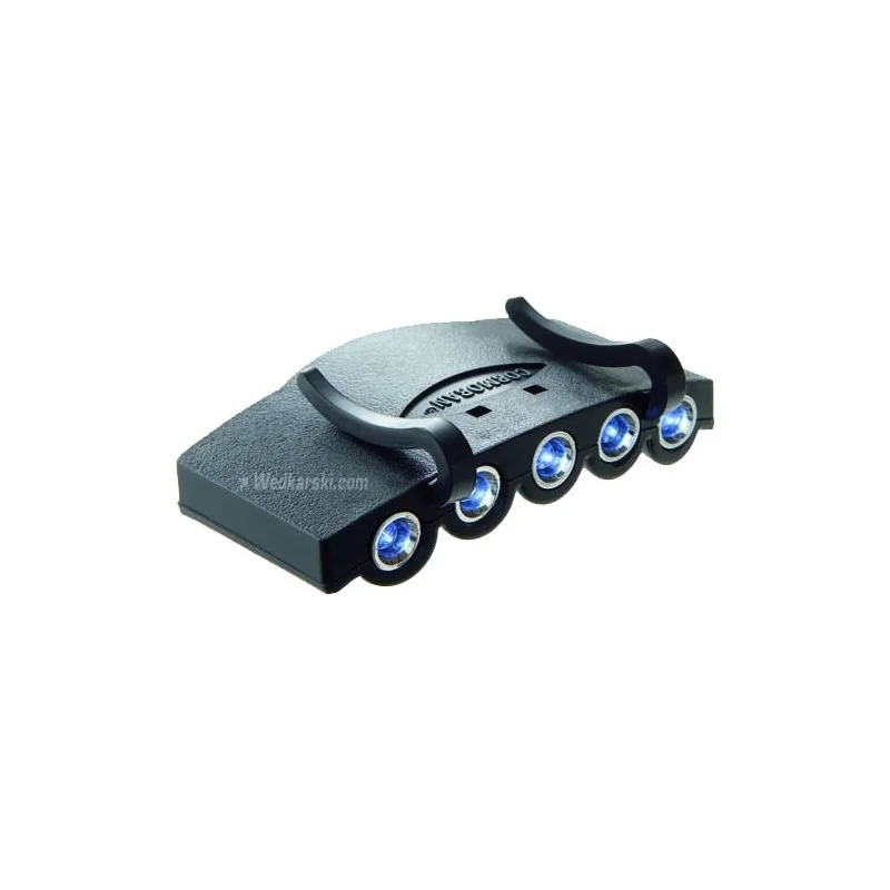 Super lekkie, tylko 32g z bateriami. Wystarczy zaczepić na daszku czapki. Wodoszczelna konstrukcja. 5 super jasnych diod LED. Duża oszczędność baterii. Wyłącznik. Dostarczane z baterią.