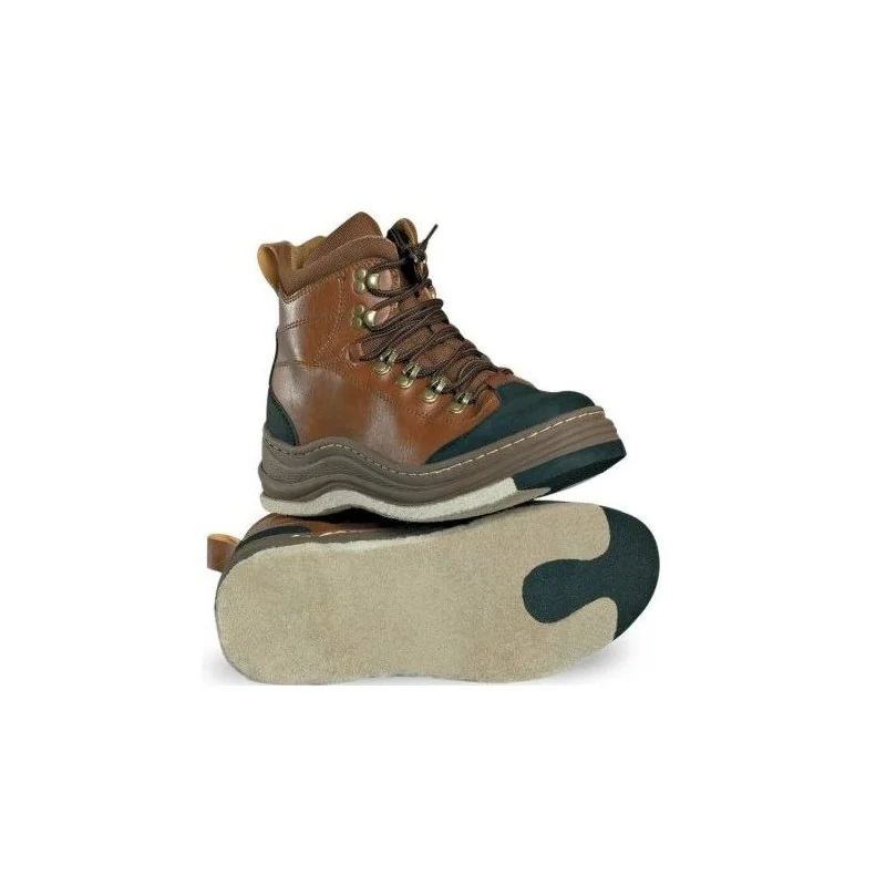 Te wytrzymałe buty nie absorbują wody i nie zawiodą Cię nawet w bardzo nieprzyjaznych warunkach. Zostały zaprojektowane w taki sposób, aby pasowały do neoprenowych skarpetek oraz dodatkowych warstw ocieplających. Są łatwe w nakładaniu i zdejmowaniu. Mosiężne kółka na dziurkach do sznurowadeł (całkowicie odporne na korozję) ułatwiają sznurowanie buta. Filcowana podeszwa została pokryta gumą na czubkach, co ułatwia zachowanie równowagi.