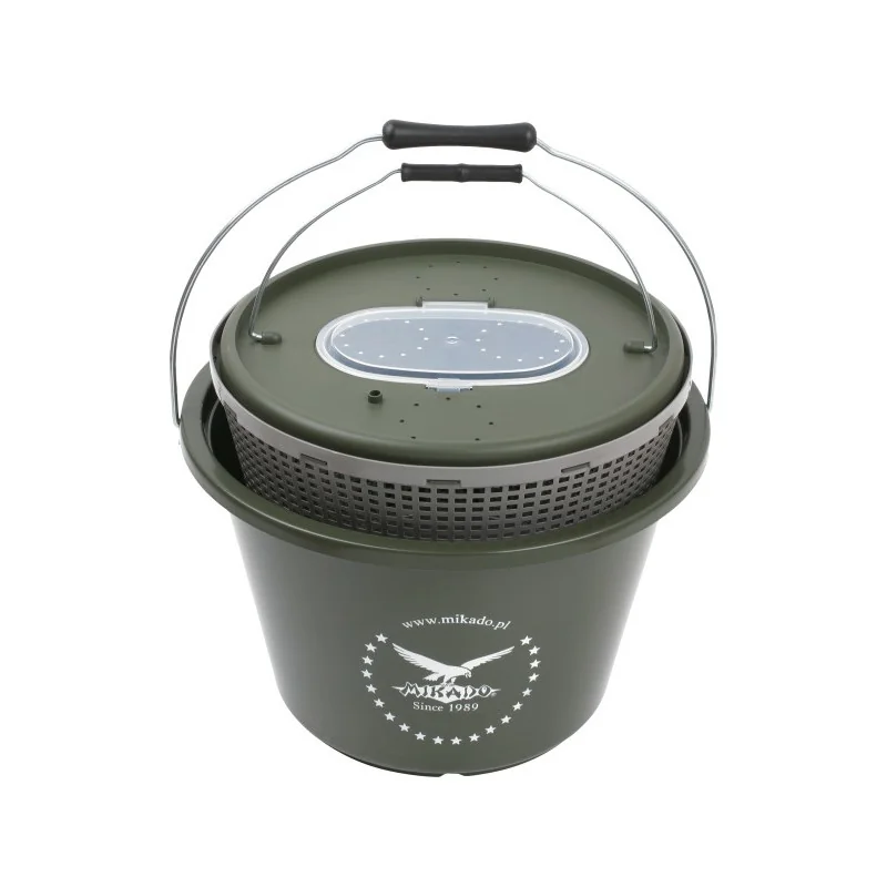 Profesjonalne wiadro do transportu żywców o pojemności 15 litrów. Wykonane z trwałego plastiku, pozwala na transport żywych rybek na duże odległości. Dwuwarstwowa budowa pozwala na łatwe wyjęcie ażurowego wkładu z rybami i umieszczenie go w w jeziorze lub rzece na czas wymiany wody w wiadrze. Pojemniki posiadają otwór przez który można podłączyć pompkę napowietrzacza.