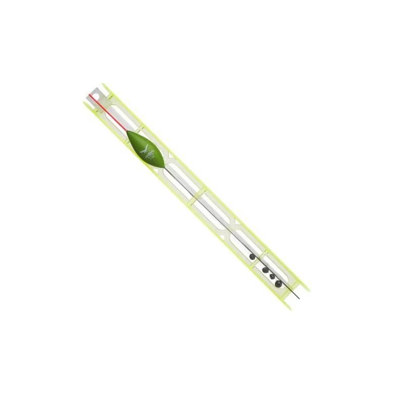 Zestaw gotowy do użytku składający się z przyponu, ze spławikiem oraz ciężarkami, wszystko przygotowane na drabince.