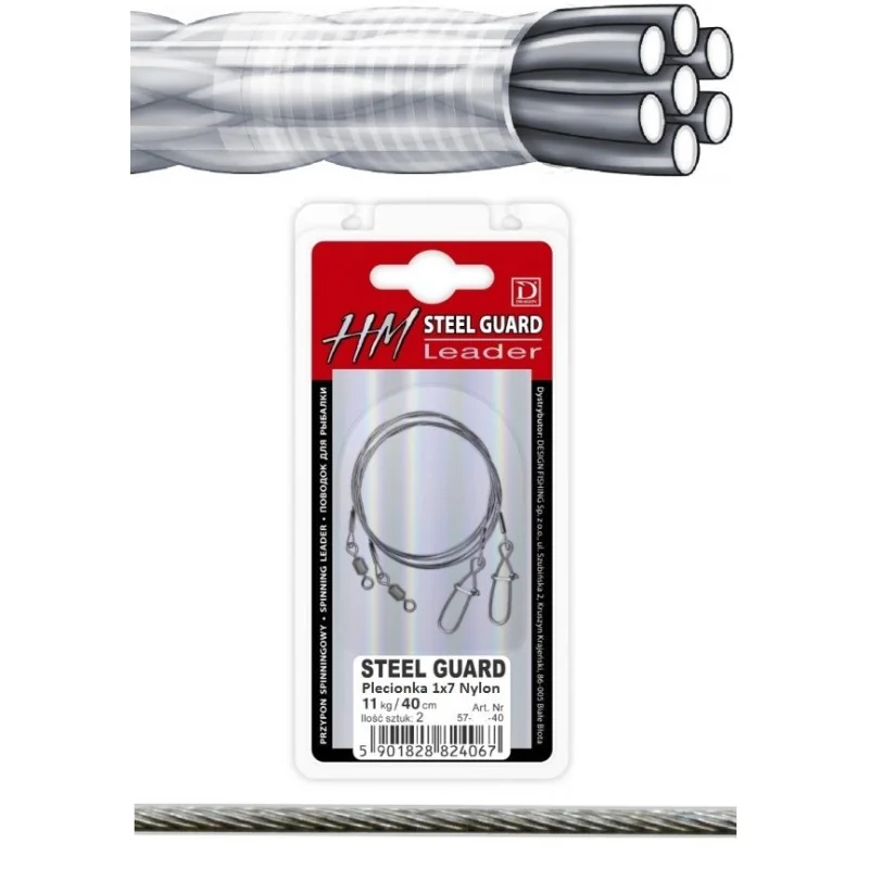 Wersja NYLON, to 7-włóknowa plecionka stalowa w kolorze srebrnym, w przeźroczystej otulinie nylonowej, zwiększającej odporność na skręcanie. Zakończony z jednej strony krętlikiem, a z drugiej agrafką.