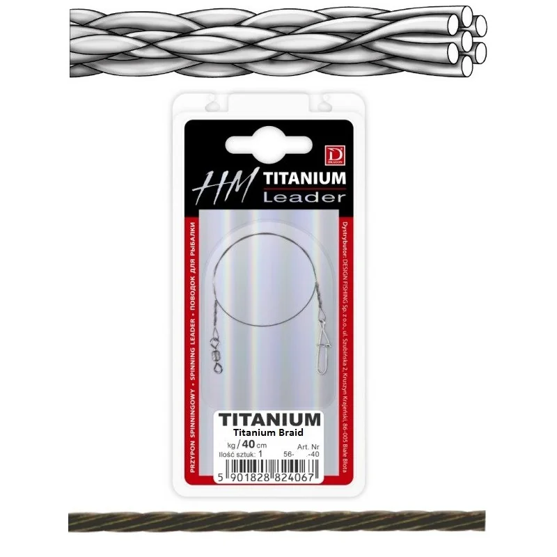 Nieprawdopodobnie cienka, mocna i trwała plecionka z siedmiu włókien tytanowych. Sprężysta, odporna na skręcanie i na uszkodzenia mechaniczne podczas użytkowania. Zakończony z jednej strony krętlikiem, a z drugiej agrafką.