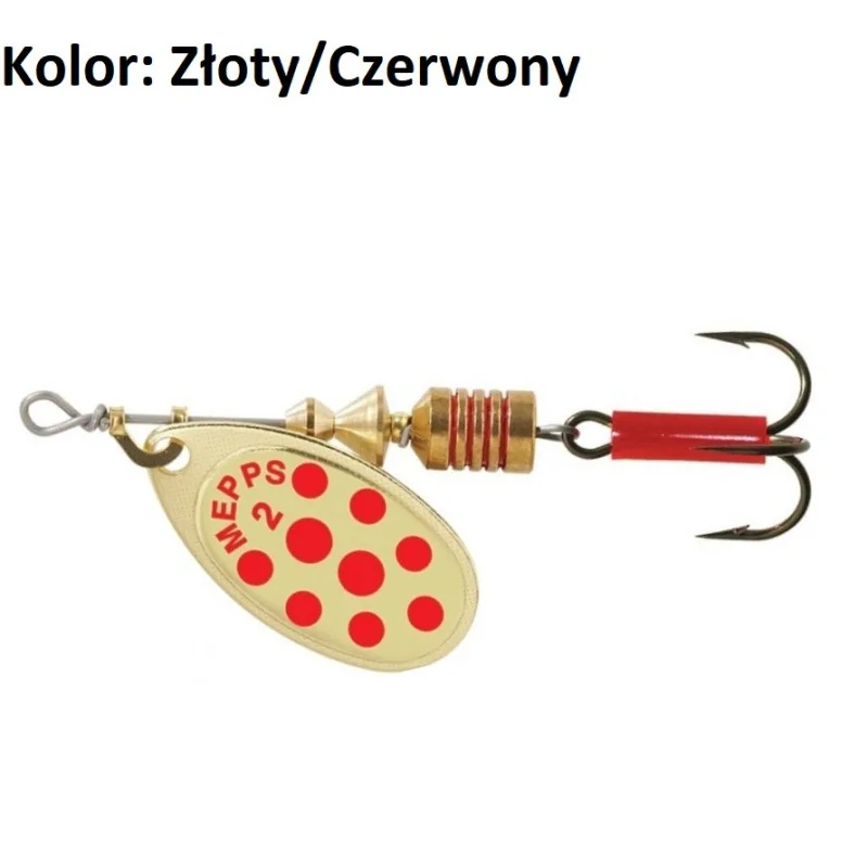 Klasyk Meppsa - tylko pozornie czerwone i czarne kropki na standardowych paletkach typu Aglia to taki sobie bezładny ozdobnik. Tymczasem podczas wirowania tworzy się w wodzie paskowana smuga o zależnych od prędkości obrotów przejściach tonalnych, gradientach znakomicie uatrakcyjniająca łowność błystek.