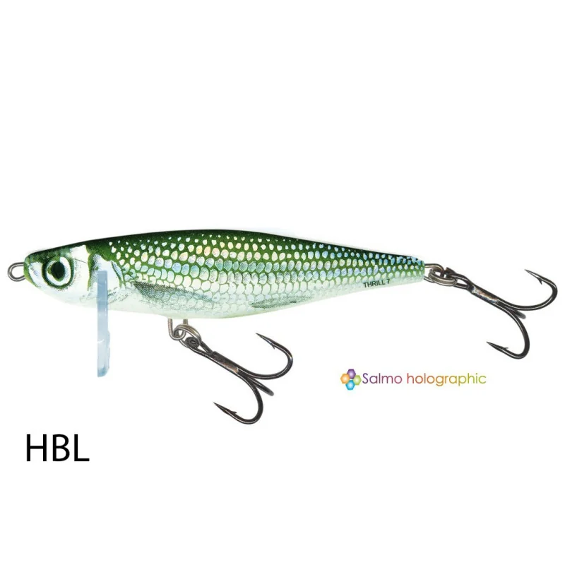 Thrill to odpowiedź firmy Salmo na odwieczny problem rzecznych spinningistów. Boleń : łosoś wód śródlądowych, szybki i piękny jak srebrna błyskawica. Pojawia się jak duch, rozbryzgując wodę i prawie przyprawiając wędkarza o atak serca. I choć rasowy łowca niechętnie przyznaje, że jakiejś ryby złowić nie potrafi, to właśnie chyba o boleniach najczęściej mówiono, że są nie do złowienia. Mówiono, bo Thrill ten problem rozwiązał. Pracuje drobno, dokładnie imitując kilkucentymetrową uklejkę. Jest smukły i ciężki, długim wędziskiem dobrej klasy można go posłać nawet na odległość 70 metrów. Ta przynęta ma wszystko, czemu boleń nie potrafi się oprzeć.