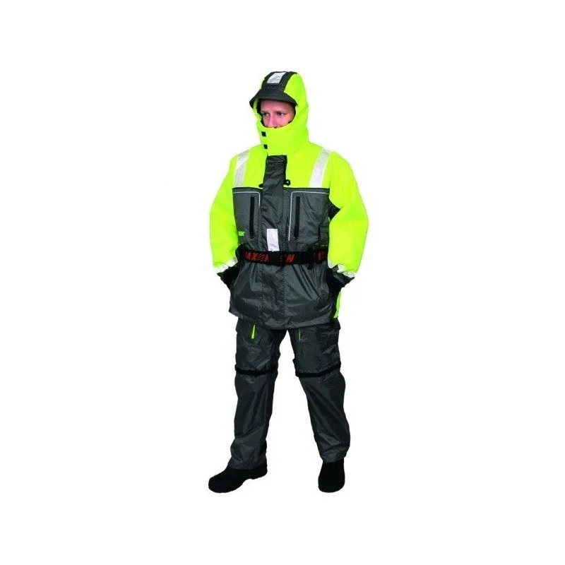 Dwu-częściowy pływający kombinezon wędkarski. Nieprzemakalne, dobrze ocieplane ubranie wędkarskie pływające, pozwalające wędkarzowi utrzymać się przez dłuższy czas na powierzchni wody, ale niezastępujące kamizelki ratunkowej. Dodatkowe neoprenowe ściągacze końcówek rękawów chronią przed utratą ciepła.