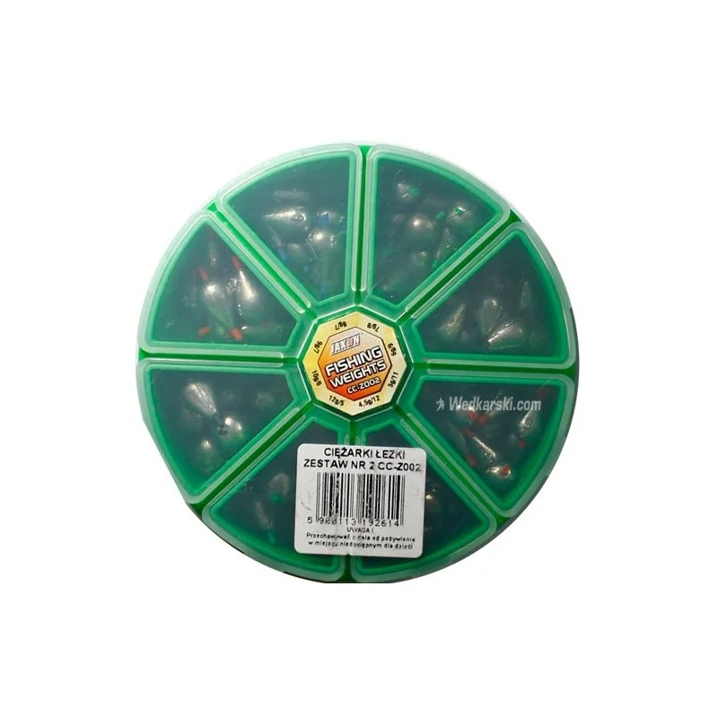 Komplet ciężarków w kształcie łezki o różnej gramaturze.