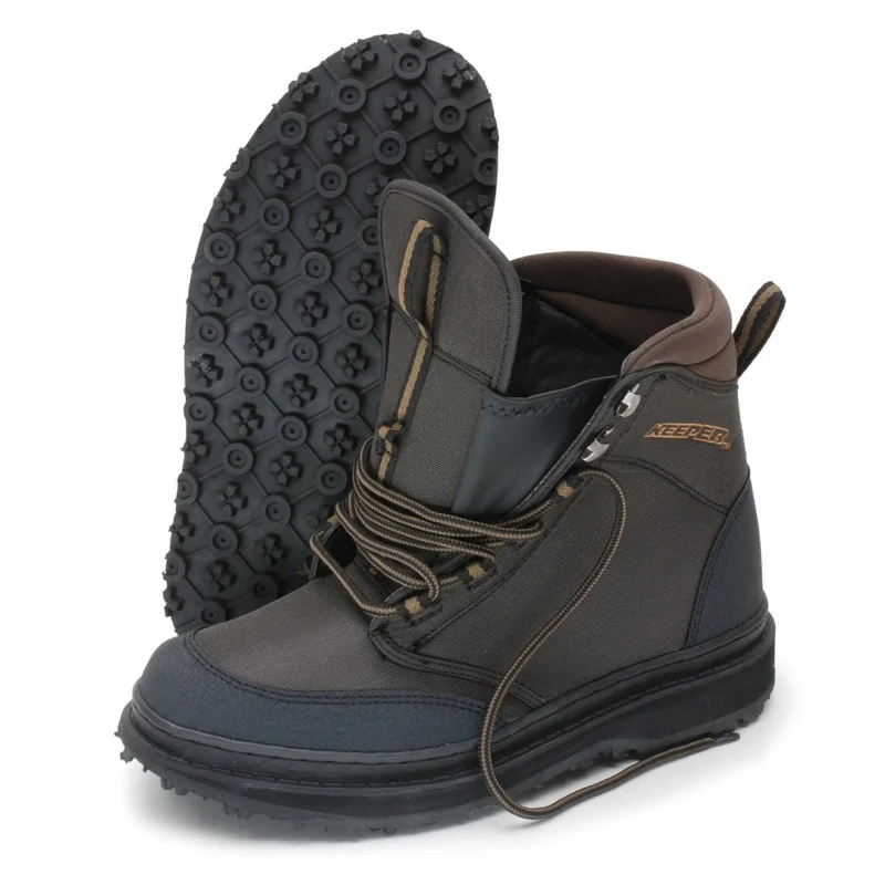 Wiele lat w branży wędkarskiej pozwoliło firmie Vision stworzyć markę Keeper, która jakością dorównuje najlepszym firmom na świecie. Buty Keeper są jednymi z najlżejszych butów do brodzenia, które są dostępne na naszym rynku. Wykonane są z materiału Cordura z wyściółkami koło kostek. Posiadają dodatkowe stabilizatory na pięcie i palcach. Długi język oraz szybki system sznurowania zapewnia bezpieczny i pewny chwyt. Podeszwa w tej wersji wykonana jest ze specjalnej gumy, posiadającej specjalne otwory na kolce. Dla jeszcze większego komfortu podeszwę gumową od stopy oddziela warstwa specjalnego materiału EVA, która się cechuje dużą elastycznością, odpornością na uszkodzenia mechaniczne (szczególnie na ostre skały i kamienie) oraz odpornością na promienie UV.