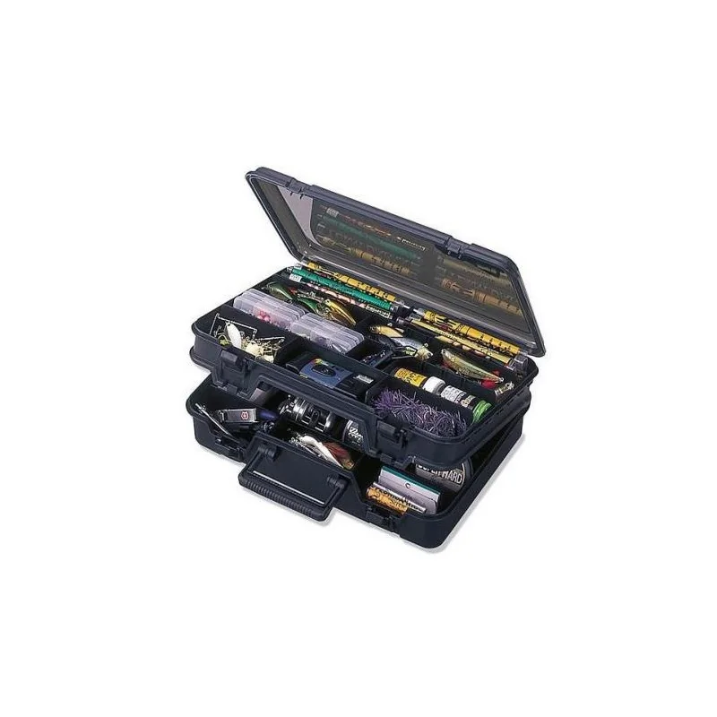 Górna, płytsza komora posiada trzy długie, stałe przegrody itrzy krótsze, plus kilkanaście ruchomych ścianek regulacyjnych. W dolnej części znajdują się trzy stałe przegrody i duża komora z pięcioma ściankami regulacyjnymi. Model "3070" będzie doskonałym wyborem do przechowywania dużych i średnich woblerów i gum w większych rozmiarach. Cztery opatentowane zatrzaski wykonane zbardzo trwałego i mocnego tworzywa stanowią pełne zabezpieczenie dla cennych przynęt. Pod pokrywa znajdują się otwory wentylacyjne.