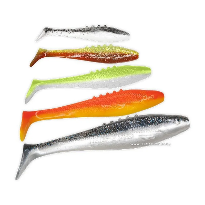 Przynęty w kształcie smukłej rybki, o intensywnej pracy ogona, połączonej z wyraźnym migotaniem części brzusznej. To hit kilku ostatnich sezonów i lider skuteczności. Dodatkowo zaskakuje niesamowitą kolorystyką PRO, dając wspaniały wybór spośród przynęt wykonanych z najnowocześniejszych, supermiękkich tworzyw silikonowych.