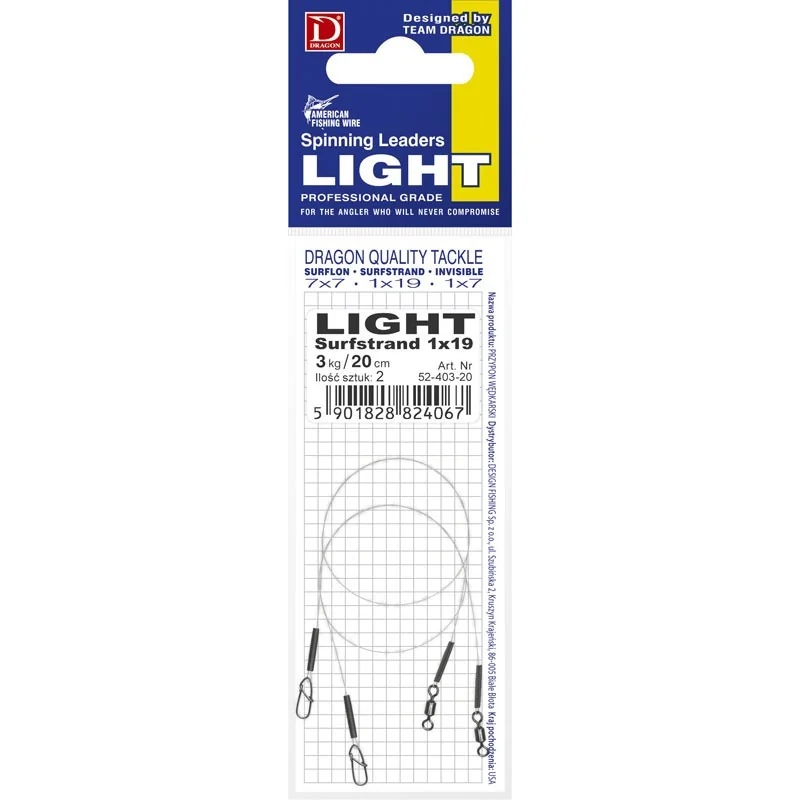 Przypony Dragon spinningowe light surfstrand 1x19 25cm / 5kg