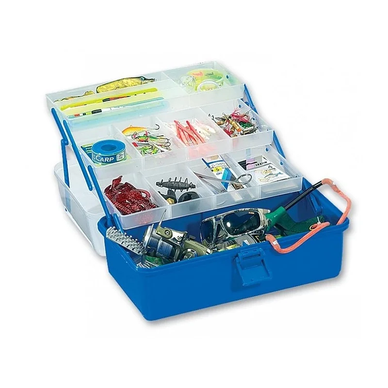 Klasyczna 3-szufladowa skrzynka wędkarska otwierana od góry. Wymiary: 34/18/20 cm.