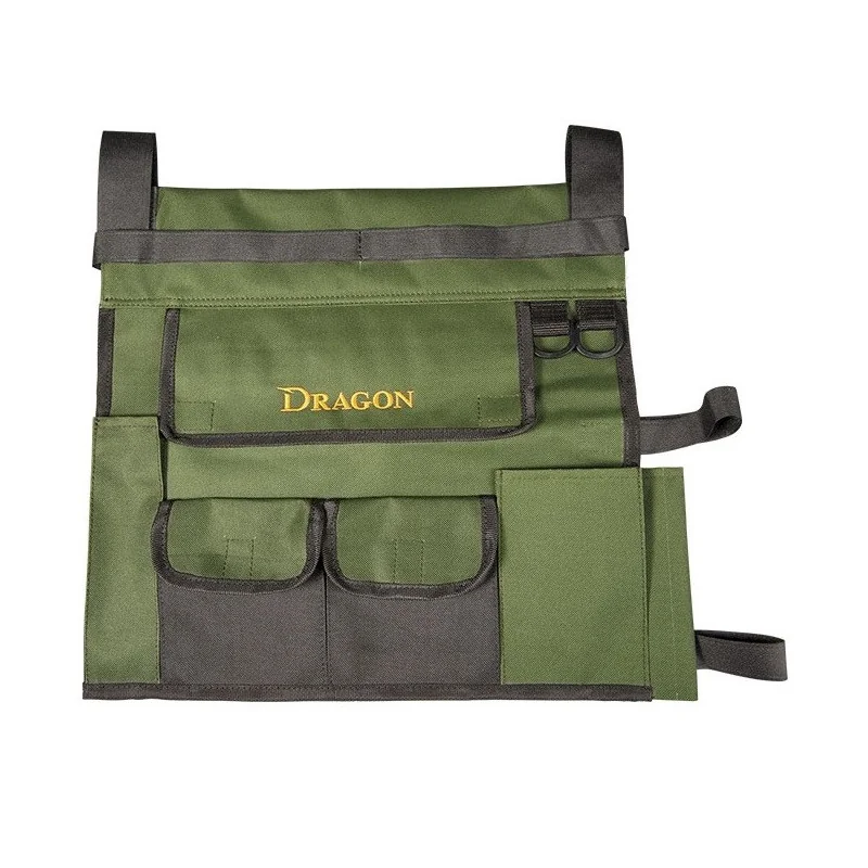 Bardzo praktyczny organizer spinningowy uszyty z mocnego materiału. Posiada dużą ilość zaczepów na przynęty sztuczne plus trzy kieszenie na akcesoria. W największej, umiejscowionej po prawej stronie możemy przechowywać szczypce lub peany wędkarskie. Trzy zapięcia na rzepy służą do umocowania organizera na relingu łodzi.