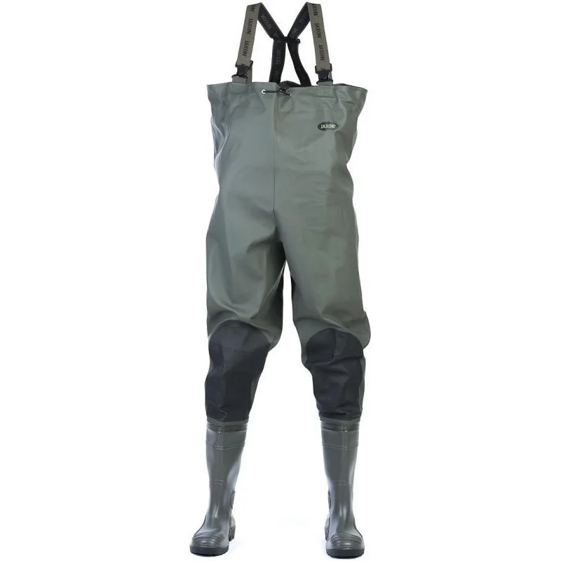 Wysokiej jakości spodniobuty wędkarskie wykonane z tworzywa Plavitex. But został wzmocniony, usztywniony i wyposażony w dodatkowy protektor, który ułatwia przemieszczanie się po trudnym terenie. W okolicy kolan producent zastosował dodatkowe nakładki dzięki czemu klęknięcie na kamieniach czy przejście przez zarośla nie stanowi zagrożenia dla szczelności spodniobutów. Te spodniobuty do piersi zagwarantują Ci komfortowe przemieszanie się nad wodą.