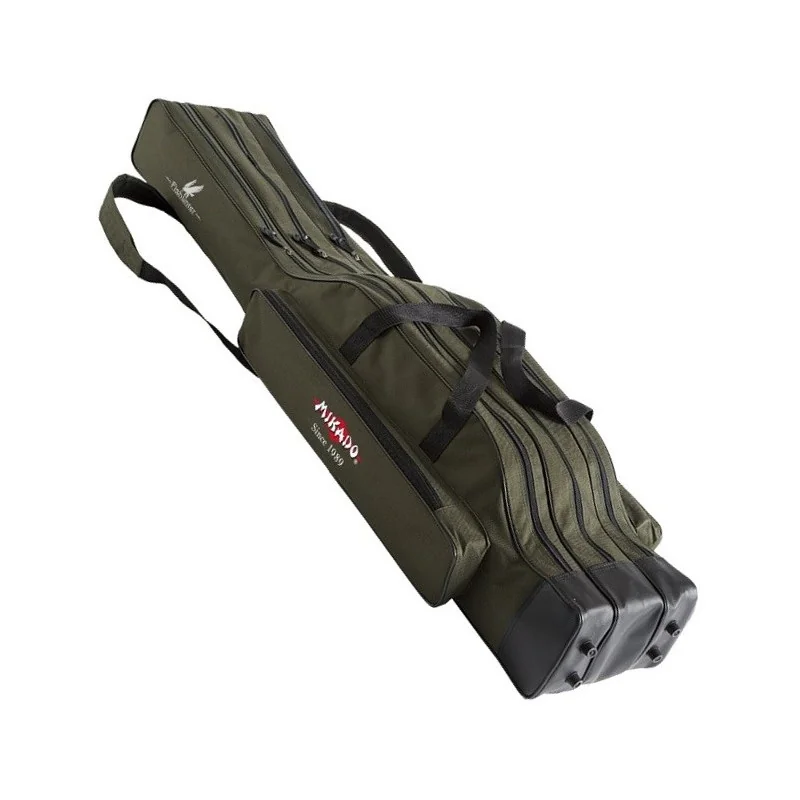 Wysokiej jakości pokrowiec wędkarski 3 komorowy na wędki firmy Mikado. Producent usztywnił w nim dno, co zapewnia dodatkową ochronę wędzisk. Dodatkowo wyposażony został w zewnętrzną komorę, w którą można schować np. podbierak lub niezbędne akcesoria. W tej serii znajdziesz wymiary pokrowców na wędki 120 cm, 140 cm, 160 cm, a co najważniejsze producent nie zapomniał o najczęściej poszukiwanym wymiarze jakim jest pokrowiec wędkarski 150 cm.