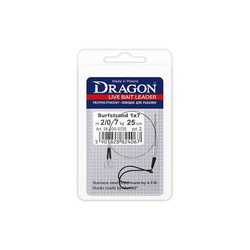 Uzbrojone pojedynczym hakiem przypony żywcowe, głównie do połowu okoni, ale też chętnie stosowane przez wielu wędkarzy do mniejszych przynęt szczupakowych. Gwarantują pełną ochronę przynęty przed obcięciem przez szczupaka! Przypony Dragon wykonane zostały z najwyższej jakości komponentów: