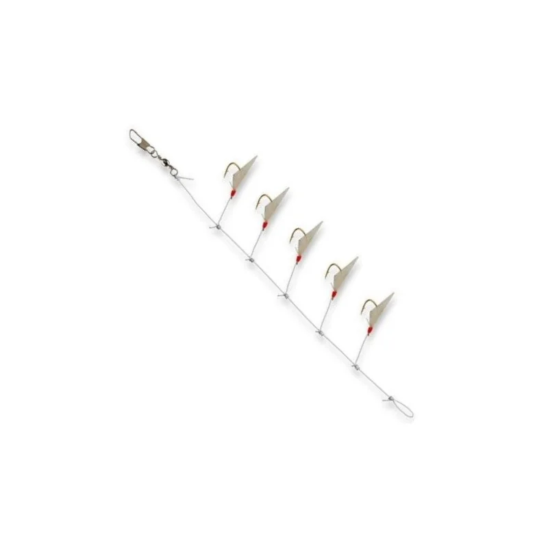 Przypon śledziowy wyposażony w 5 haków. Przypon główny wykonany na żyłce 0,30mm, troki boczne na żyłce 0,25. Rozmiar haków 8, a całkowita długość to 135cm.
